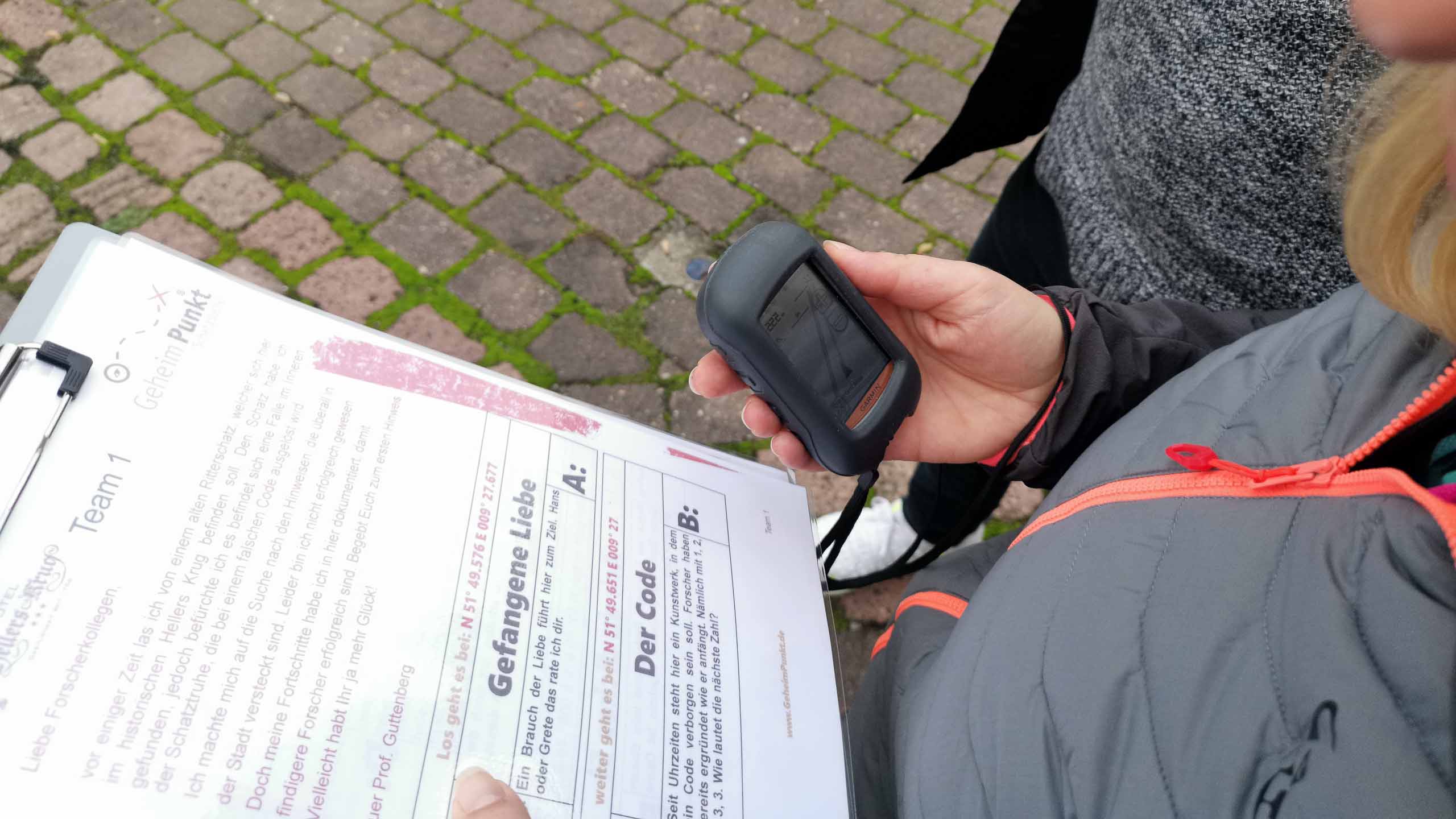 Das Ziel ist es, mithilfe von einem GPS-Gerät und geografischen Koordinaten ein jeweiliges Versteck zu finden. Haben Sie einen Cache (Versteck) gefunden, erwarten Sie kleine Rätsel oder auch Aufgaben, welche als Team zu lösen sind.
